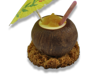 Malibu coconut mousse, pineapple/banana/ginger coulis