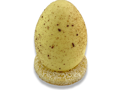 Baileys custard mousse "egg white", passionfruit & orange purée "egg yolk", and white chocolate egg shell