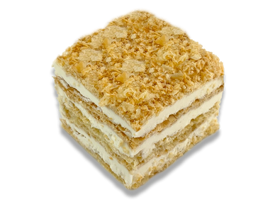 Walnut honey cake, dulce de leche buttercream, walnuts