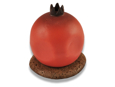 Pomegranate compote, mango mousse, hazelnut sponge base